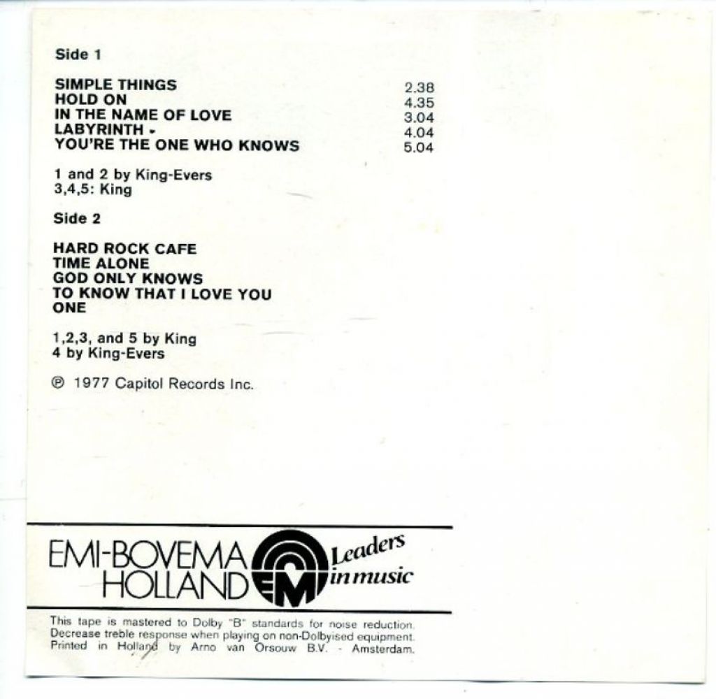 Carole King Simple Things 10 nrs cassette 1977 ZGAN