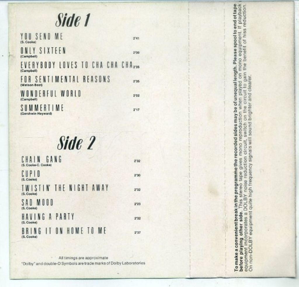 Sam Cooke – Wonderful World 12 nrs cassette 1986 ZGAN