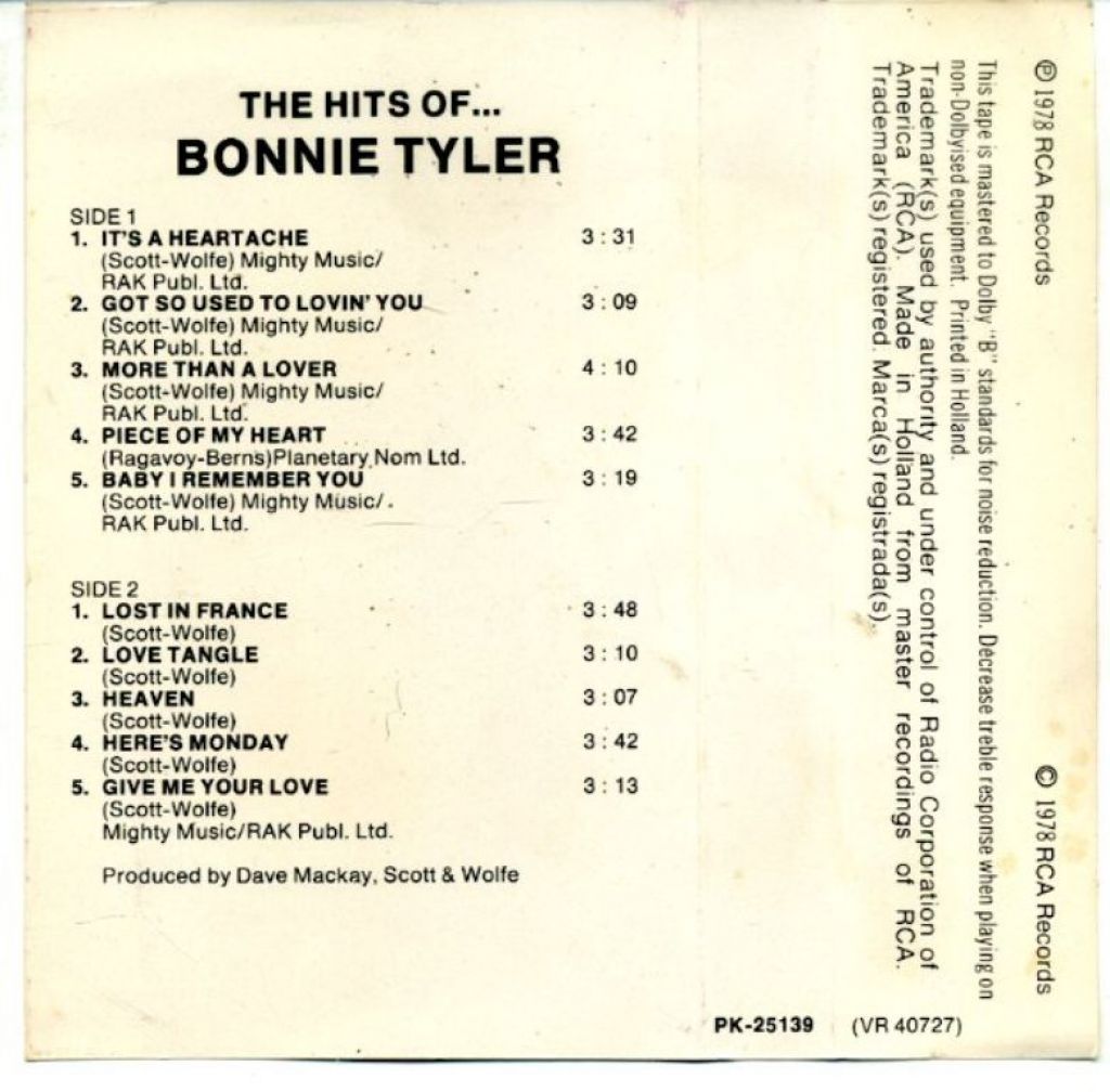 Bonnie Tyler The Hits Of Bonnie Tyler 10 nrs cassette 1978 ZGAN