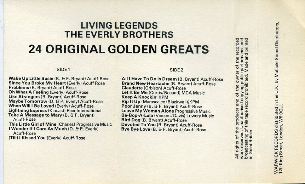 The Everly Brothers – Living Legends 24 nrs cassette 1977 ZGAN