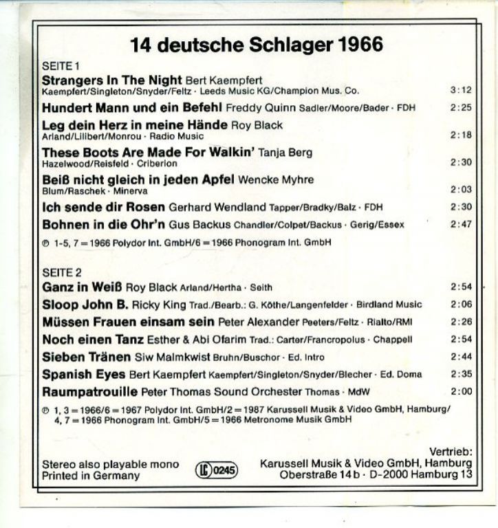 14 Deutsche Schlager 1966 cassette ZGAN