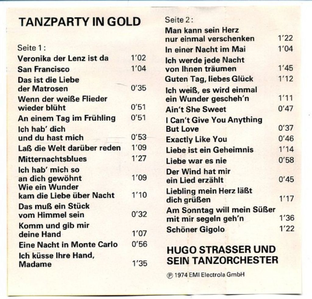 Hugo Strasser Und Sein Tanzorchester Tanzparty In Gold 28 nrs cassette ZGAN