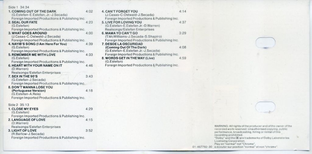 Gloria Estefan – Into The Light 16 nrs cassette 1991 ZGAN