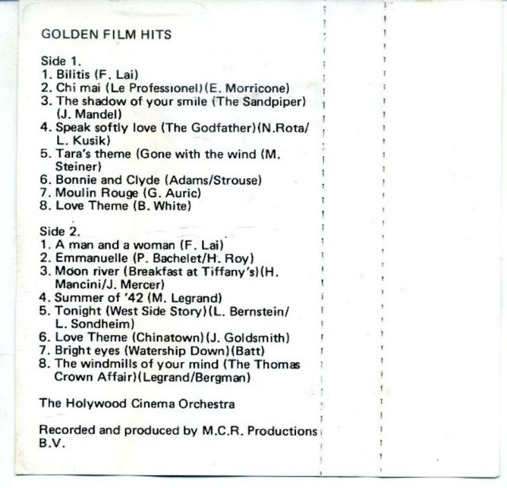 The Hollywood Cinema Orchestra – Golden Film Hits 16 nrs cassette 1993 ZGAN