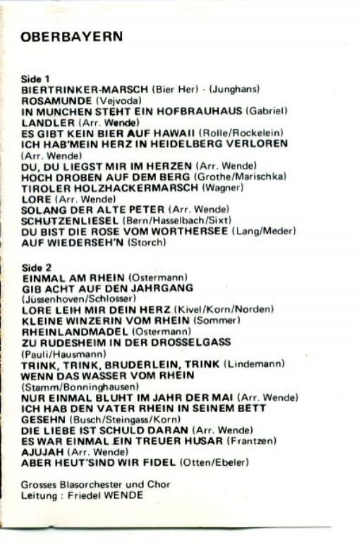 Grosses Blasorchester Und Chor – Oberbayern 28 nrs cassette ZGAN