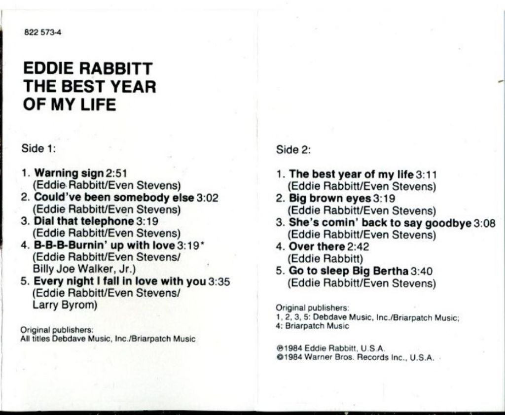 Eddie Rabbitt The Best Year Of My Life 10 nrs cassette ZGAN