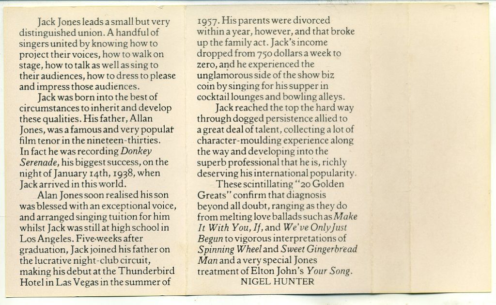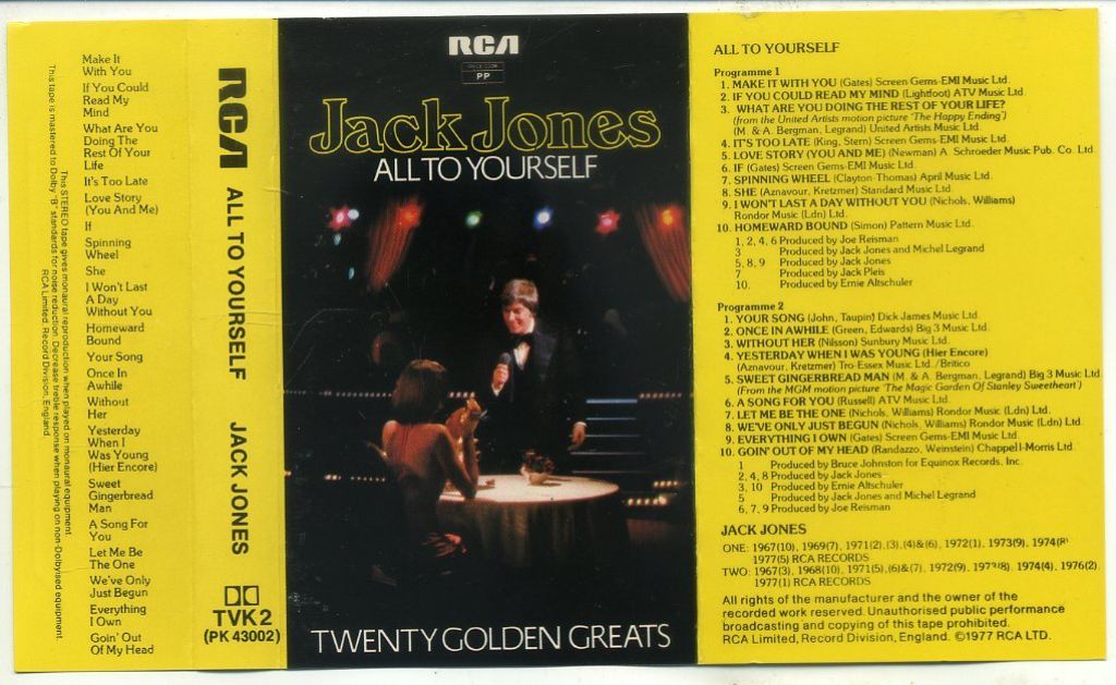 Jack Jones – All To Yourself Twenty Golden Greats cassette 1977 ZGAN