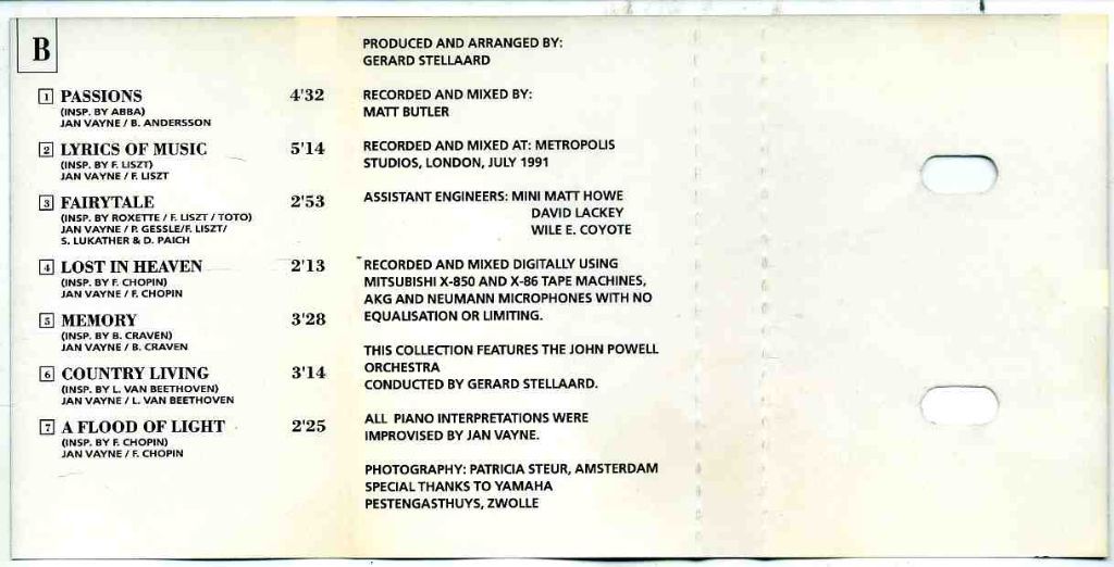 Jan Vayne Colours of my Mind 13 nrs cassette 1991 ZGAN