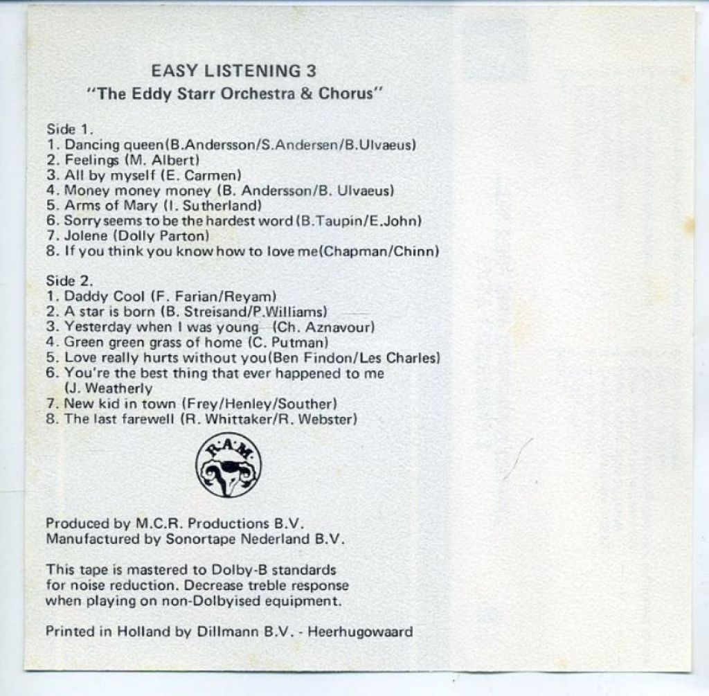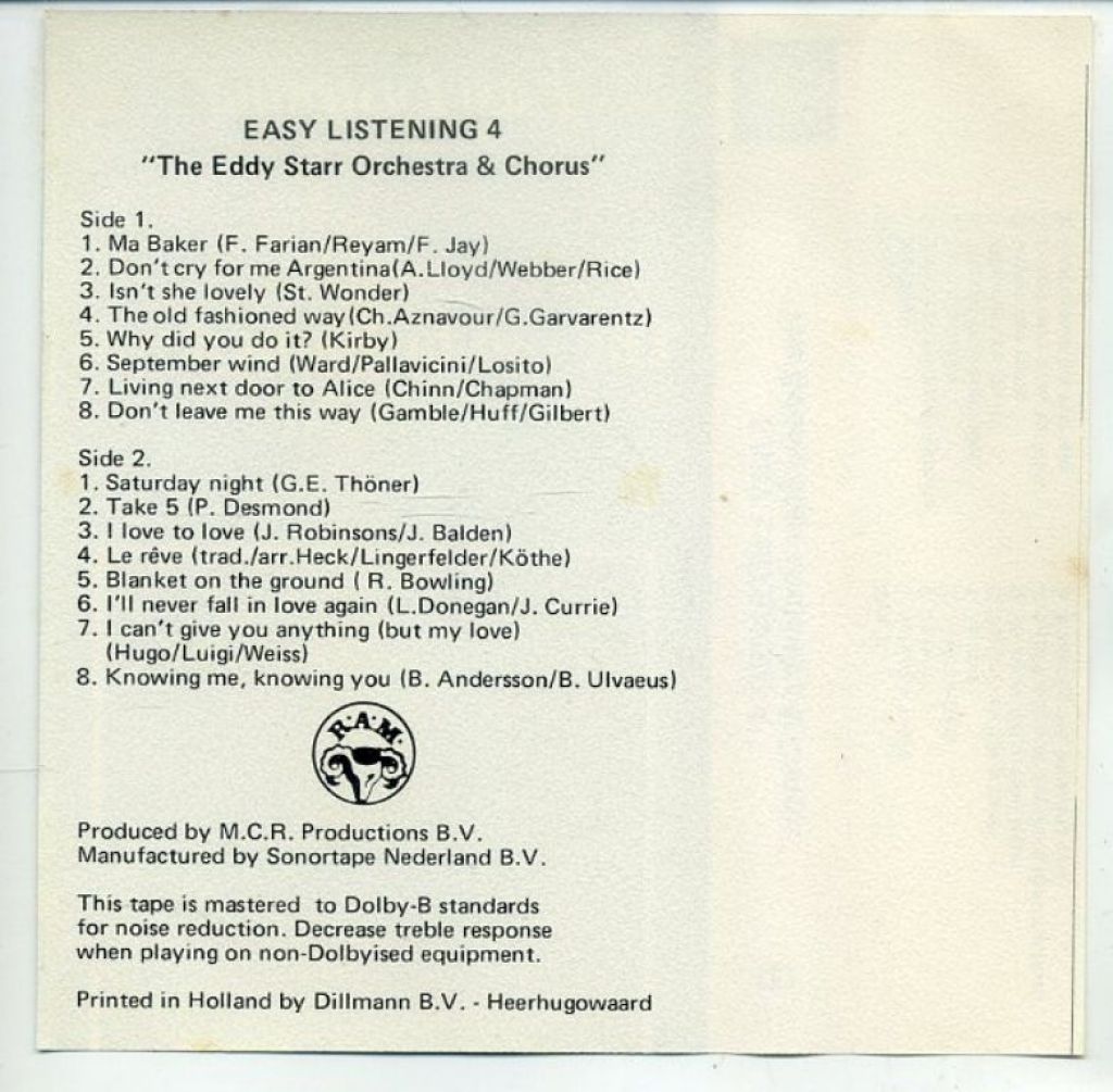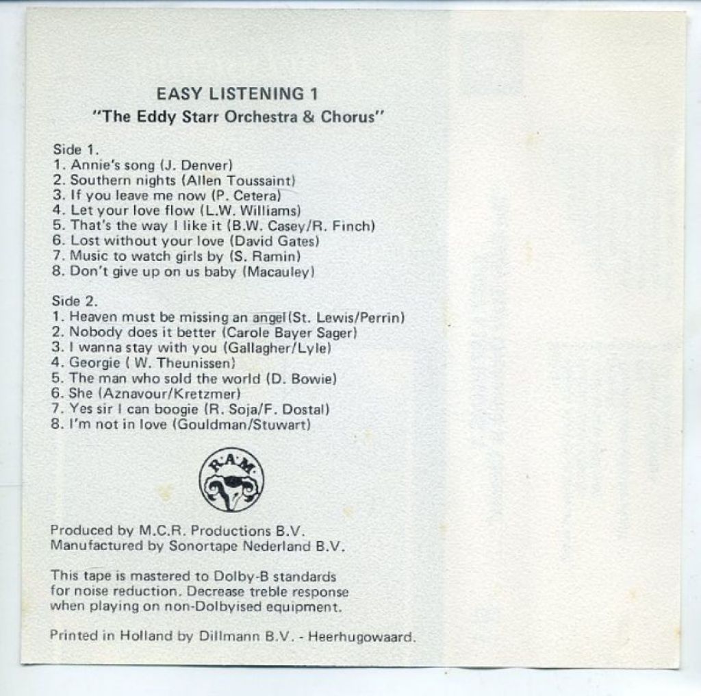 The Eddy Starr Orchestra & Chorus – Easy Listening 1 t/m 4 64 nrs 4 cassettes ZGAN