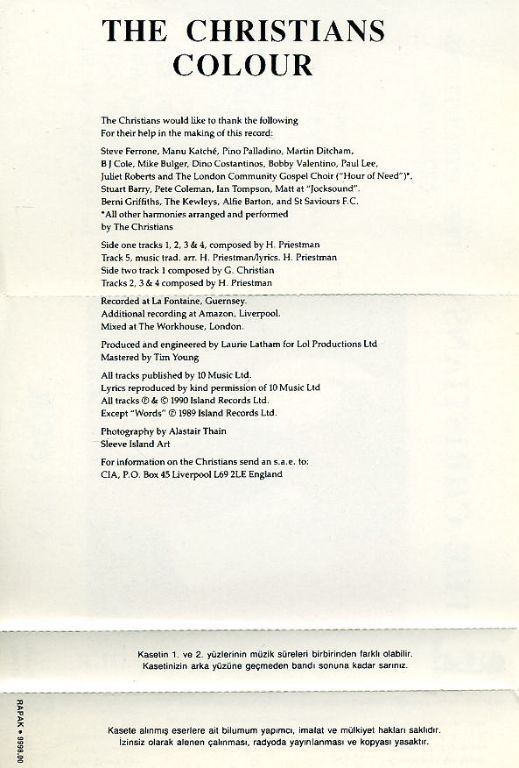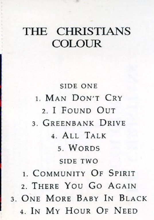 The Christians Colour 9 nrs cassette 1990 ZGAN