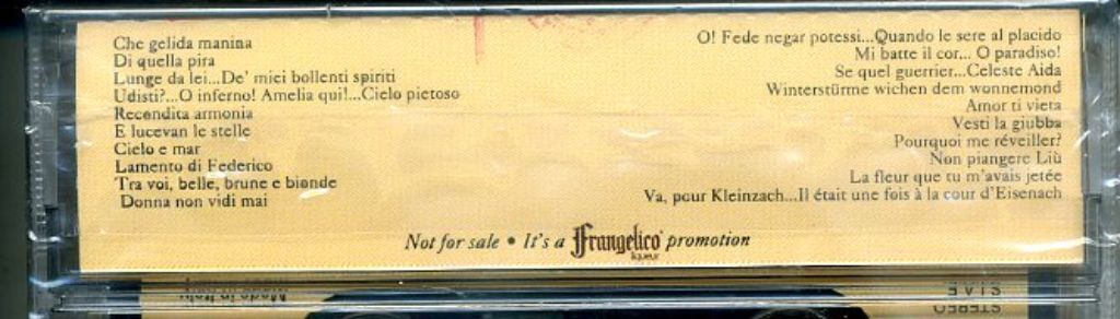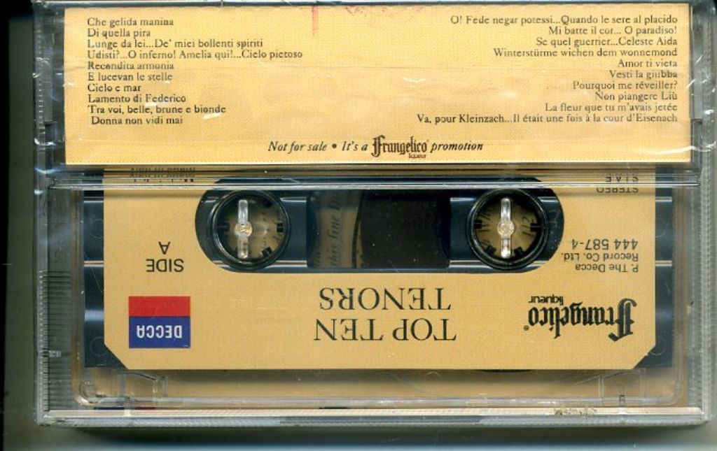 Zeldzame Frangelico Top Tenors likeur promo klassieke muziek cassettebandje. Not for sale It’s a Frangelico liqueur promotion
