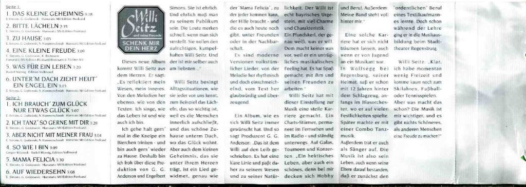 2) Willi Seitz Schenk Mir Dein Herz 12 nrs cassette 1995 ZGAN