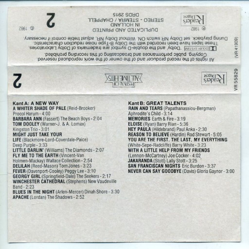 Festival Of All Time Hits 100 nrs 4 cassettes 1982 ZGAN