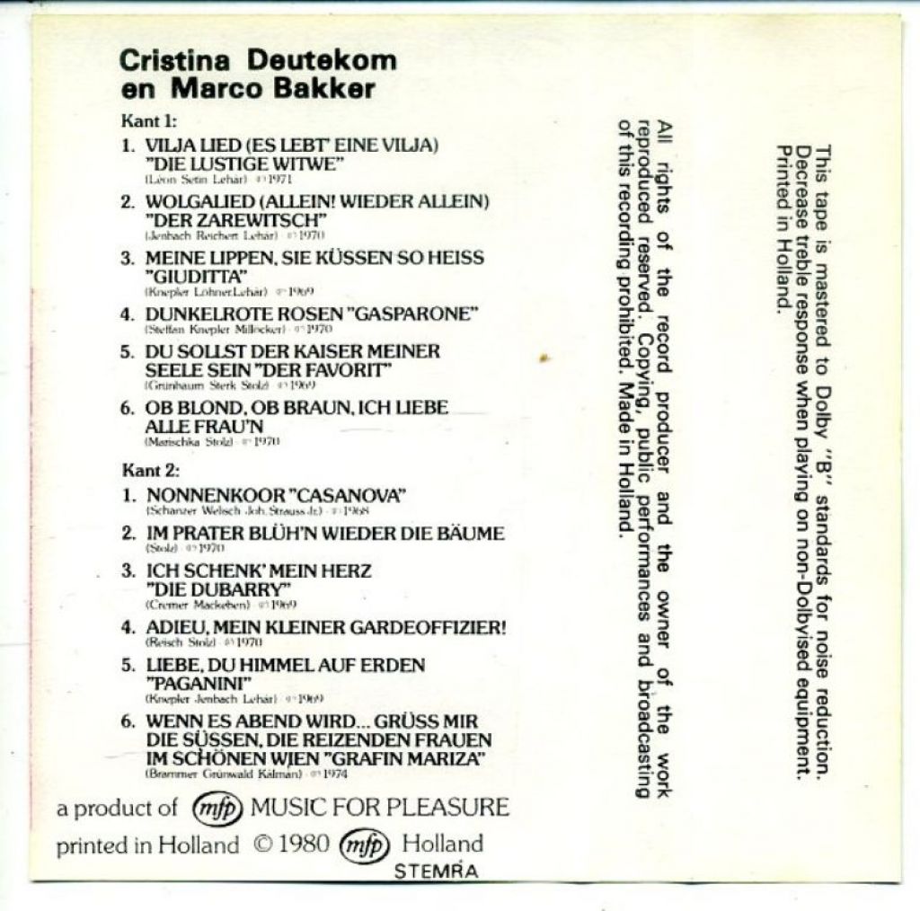 Cristina Deutekom & Marco Bakker 12 nrs cassette 1980 ZGAN