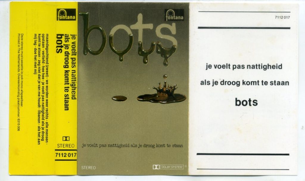 Bots – Je Voelt Pas Nattigheid Als Je Droog Komt Te Staan 11 nrs cassette 1979 ZGAN