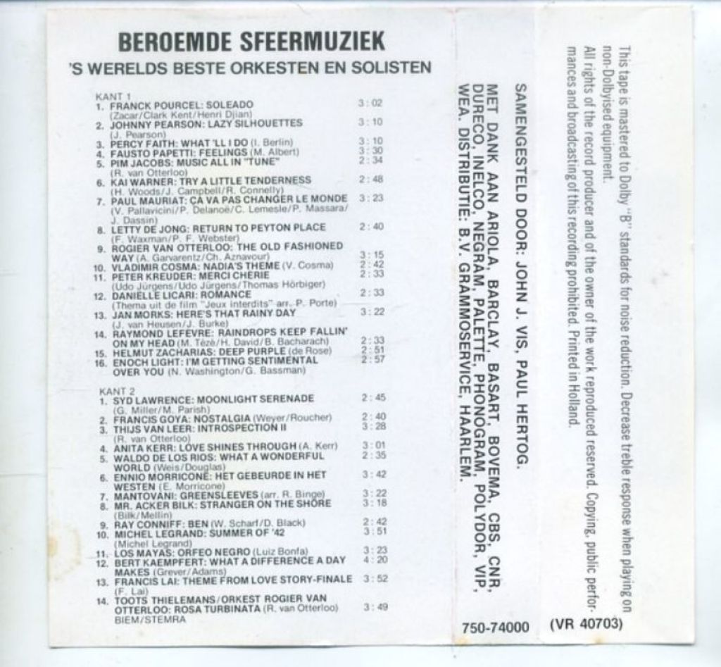 Beroemde Sfeermuziek - 's Werelds Beste Orkesten En Solisten 30 nrs cassette 1977 ZGAN