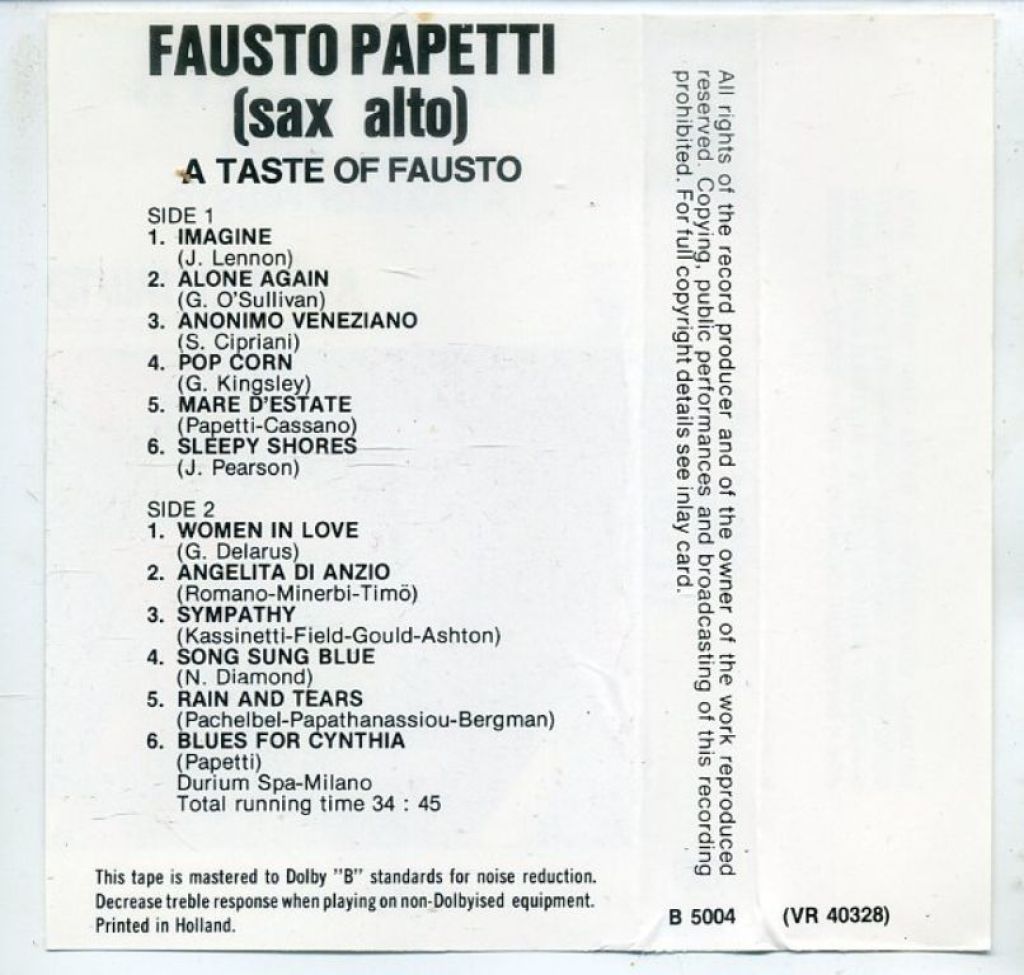 1) A Taste Of Fausto (sax alto) 12 nrs Durium, Basart Records International B.V. – B. 5004 1976 made in Holland
