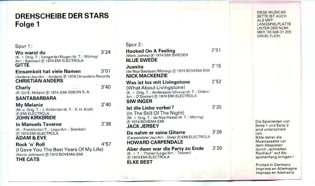 Drehscheibe Der Stars - Folge 1 12 nrs cassette 1974 ZGAN
