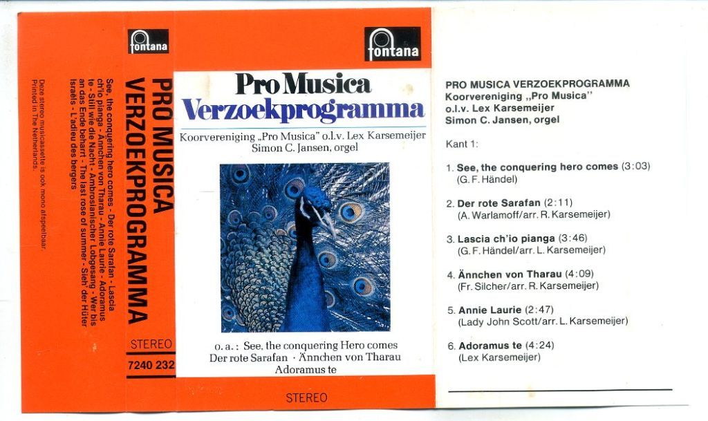 1) Pro Musica Verzoekprogramma 12 nrs cassette 1968 ZGAN