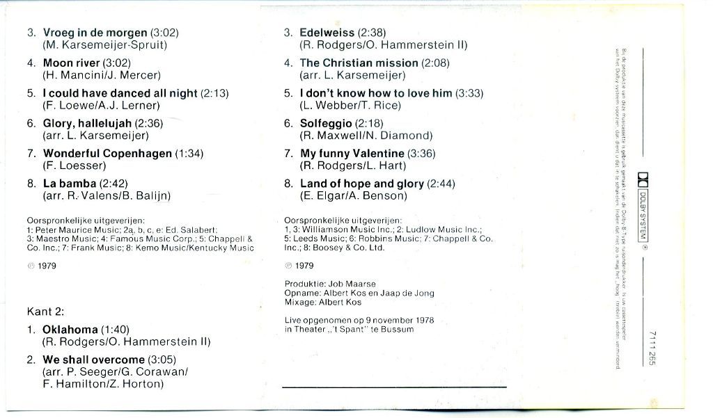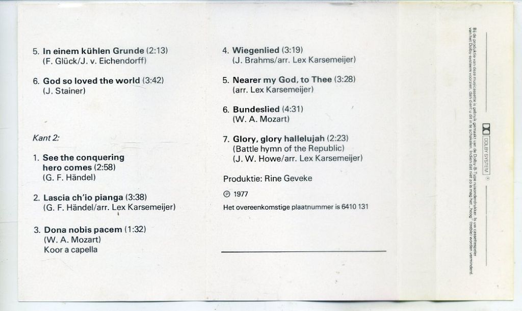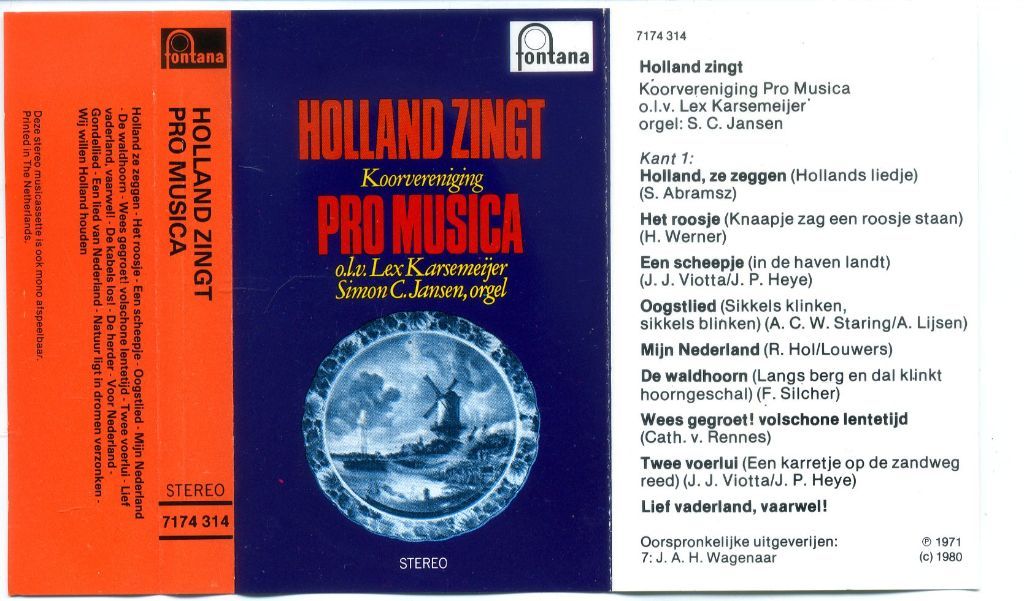 2) Pro Musica Holland Zingt 16 nrs cassette 1971 ZGAN