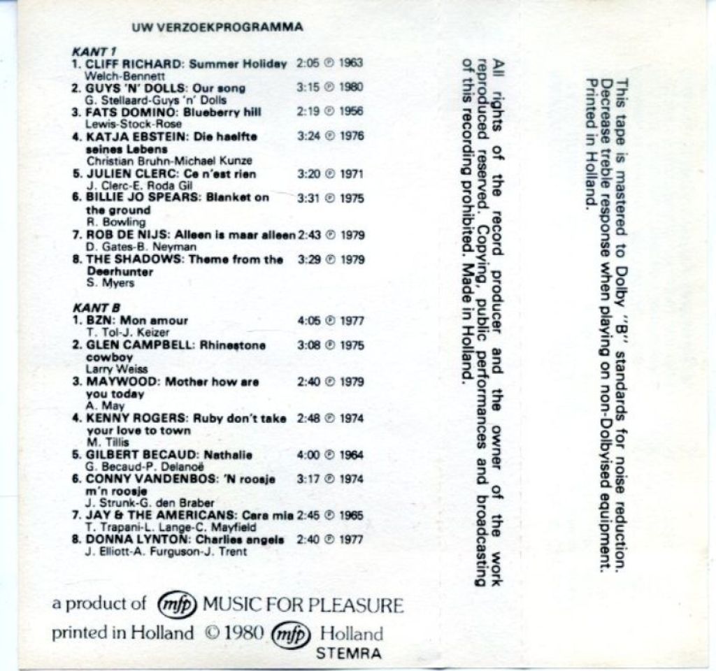 Uw verzoek programma 2 16 nrs cassette 1981 ZGAN