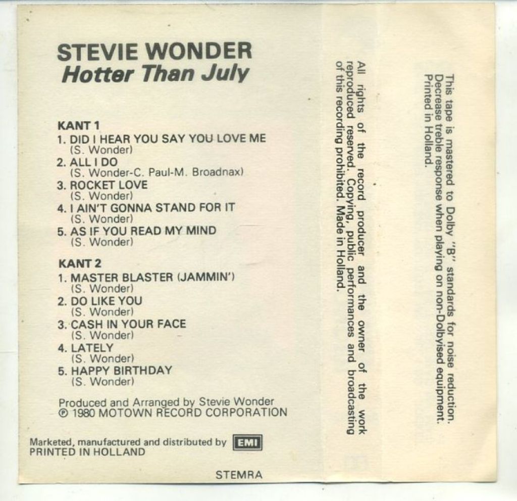 Stevie Wonder – Hotter Than July 10 nrs cassette 1980 ZGAN