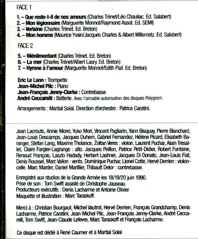 Eric Le Lann – Joue Piaf Trénet 7 nrs cassette 1990 ZGAN