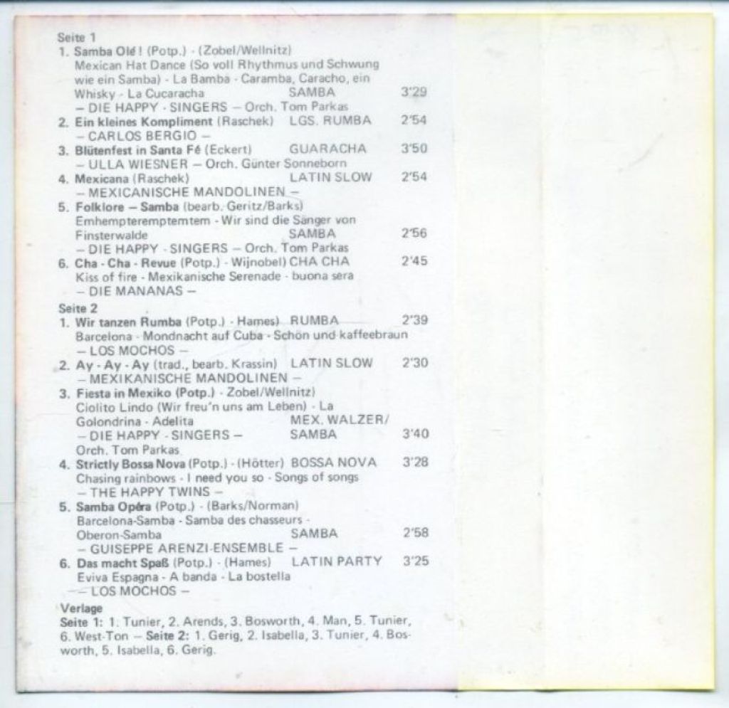 Die Happy-Singers - Orch. Tom Parkas* Fiesta In Mexiko (Potp.) (3:40)