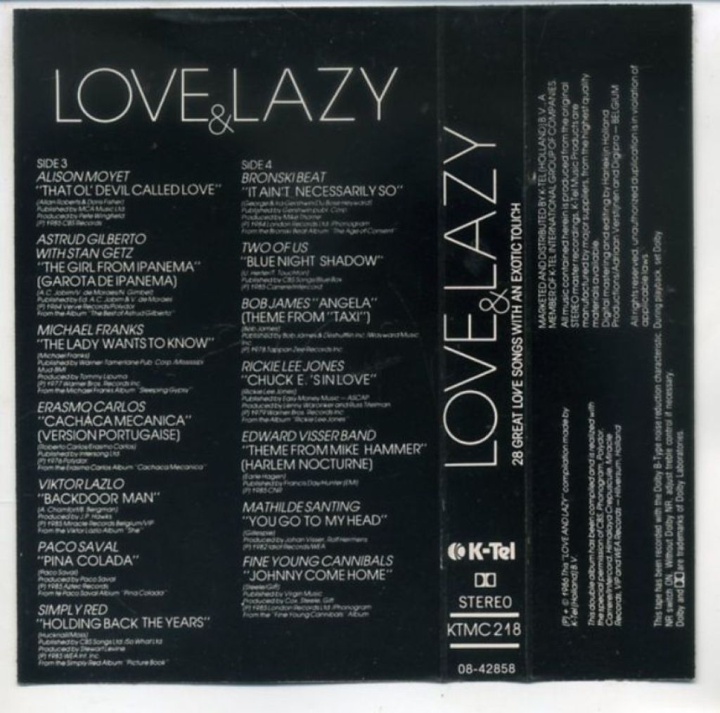 Love & Lazy 28 Great Love Songs 2 cassettes 1986 ZGAN