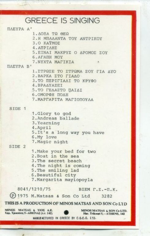 Theodorakis – Greece Is Singing Theodorakis 14 nrs cassette 1979 ZGAN