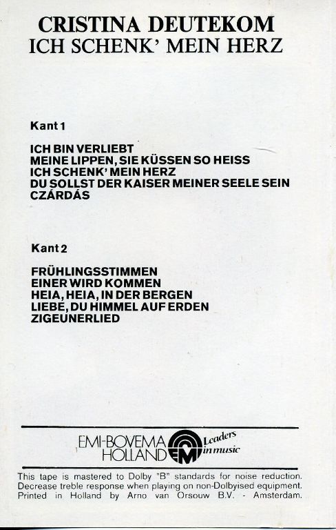 Cristina Deutekom Ich Schenk' Mein Herz cassette ZGAN