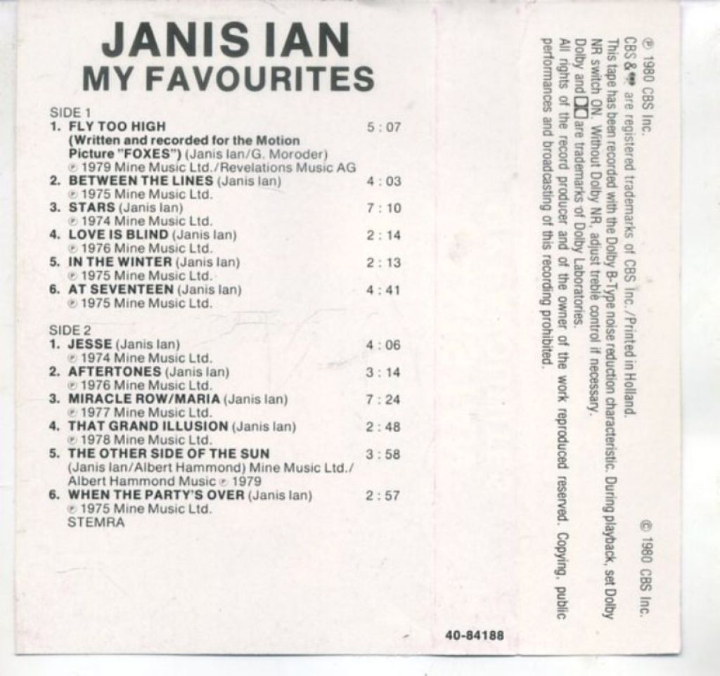 Janis Ian – My Favourites 12 nrs cassette 1980 ZGAN