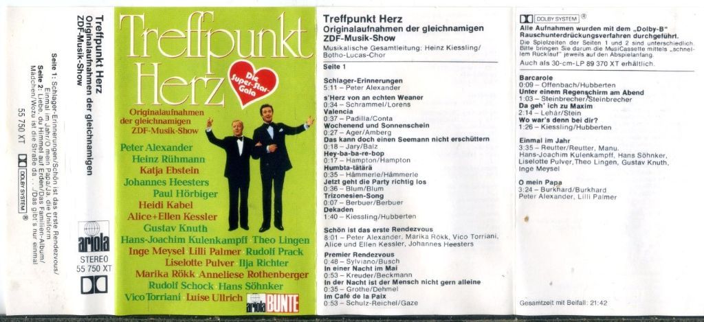 Treffpunkt Herz Originalaufnahmen Der Gleichnamigen ZDF-Musik-Show 10 nrs cassette 1975 ZGAN