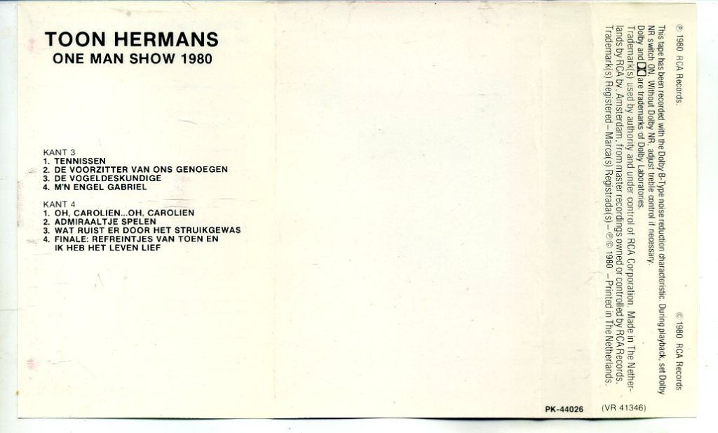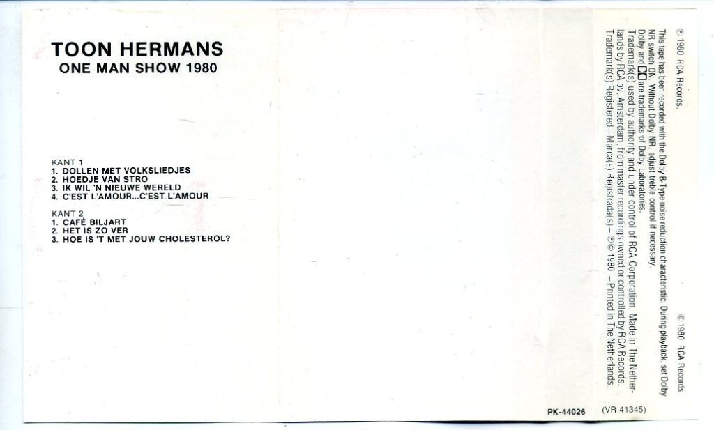 Toon Hermans – One Man Show 1980 Deel 1 & 2 15 nrs 2 cassettes 1980 ZGAN
