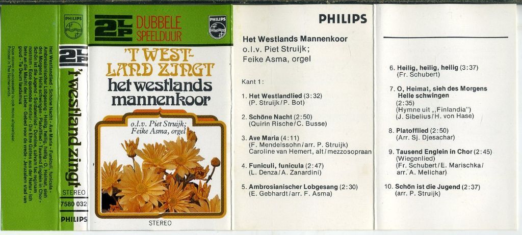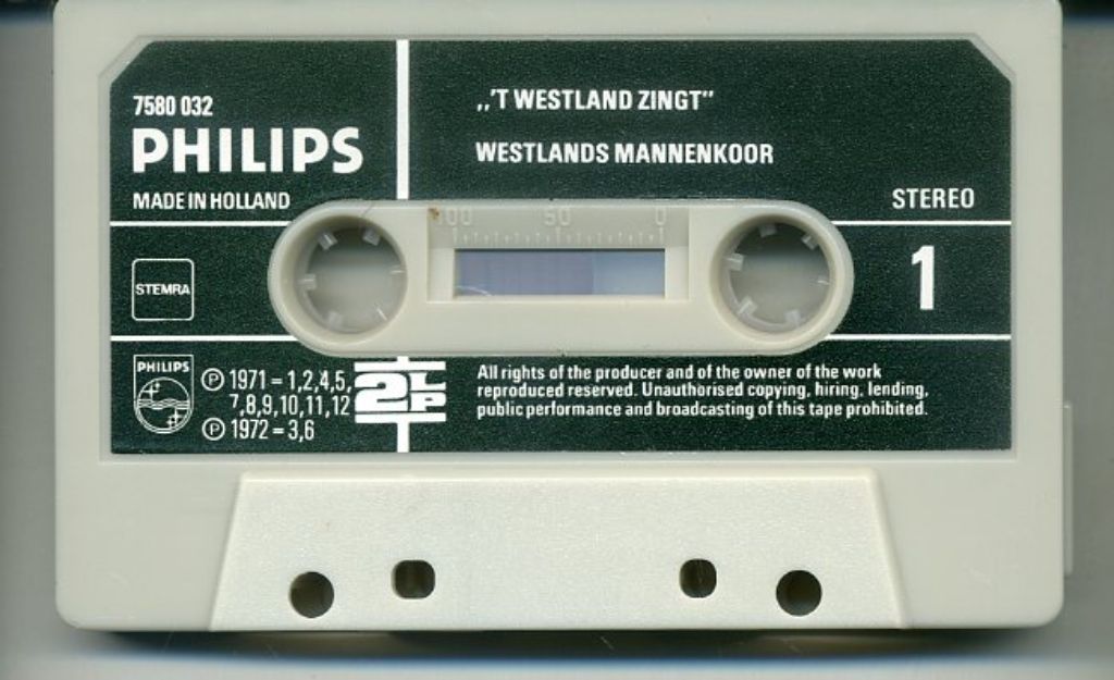 Westlands Mannenkoor – 't Westland Zingt 18 nrs cassette ZGAN