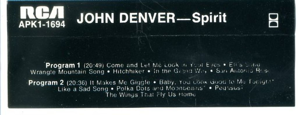 John Denver – Spirit 12 nrs cassette 1976 ZGAN