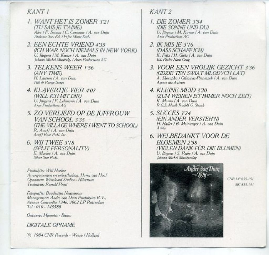 André van Duin – Wij Twee 12 nrs cassette 1984 ZGAN