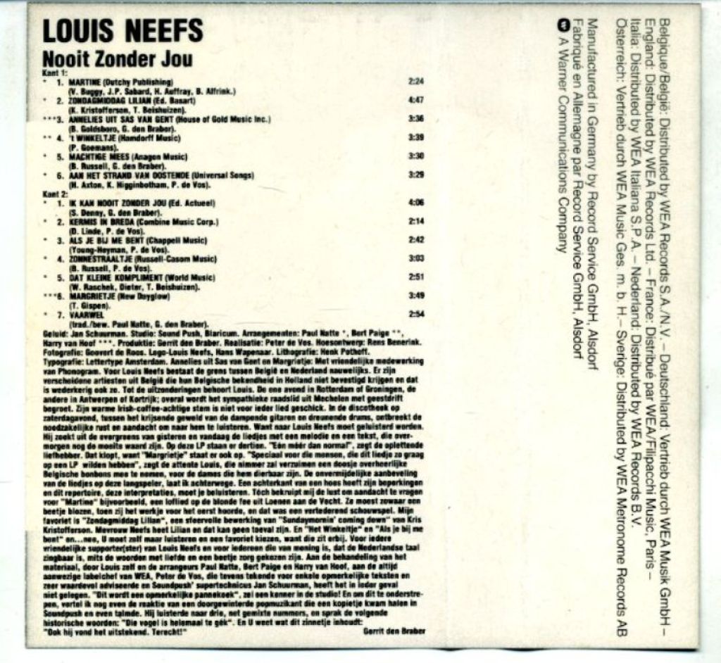 Louis Neefs Nooit Zonder Jou 13 nrs cassette 1980 ZGAN