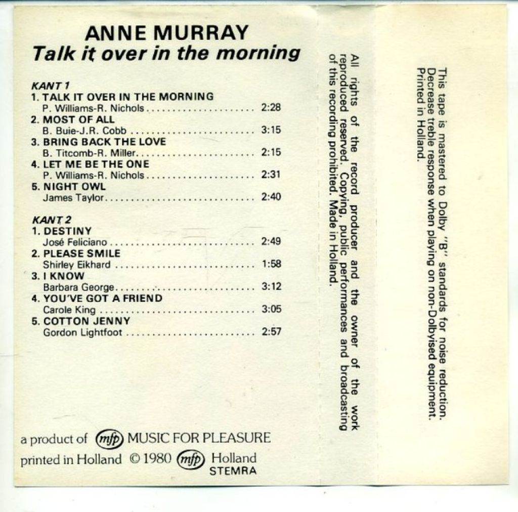 1) Anne Murray Talk It Over In The Morning 10 nrs Music For Pleasure – 1A 222-58168 1981