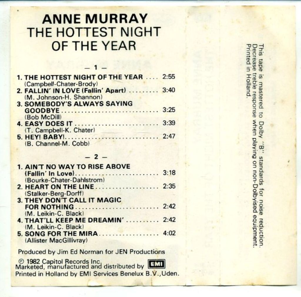 3) Anne Murray The Hottest Night Of The Year 10 nrs EMI Capitol Records 1A 264-400122 1982
