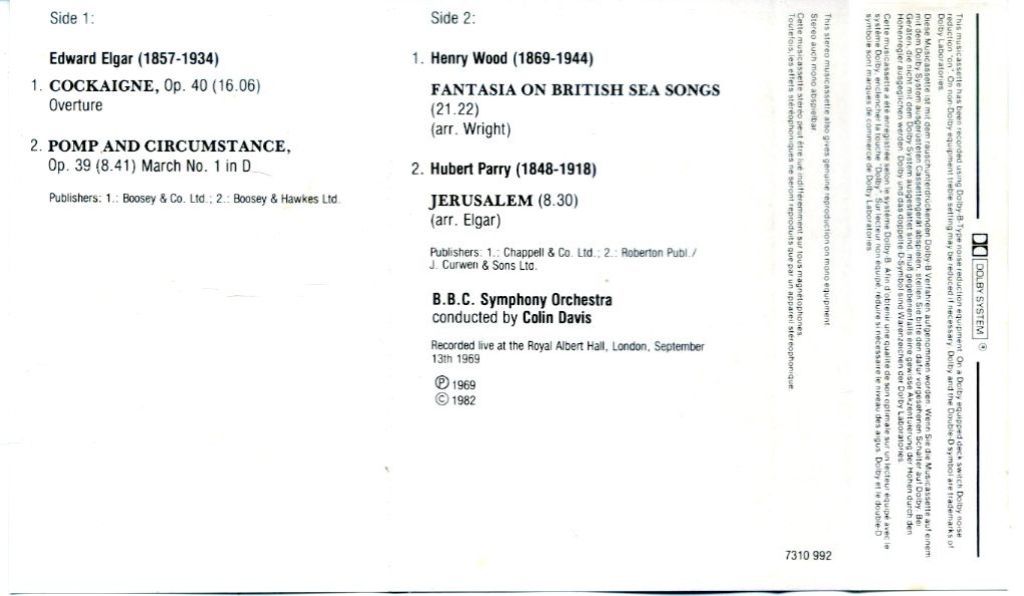 Colin Davis The Last Night Of The Proms 4 nrs cassette ZGAN
