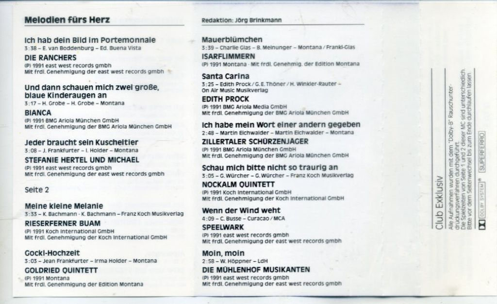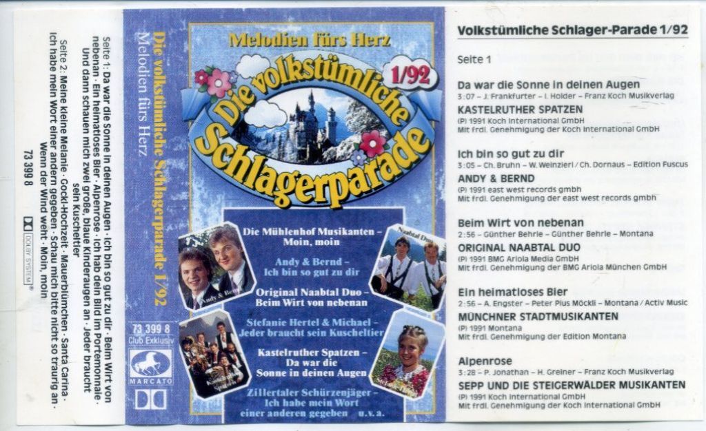 Die Volkstümliche Schlagerparade 1/92 16 nrs cassette 1992 ZGAN