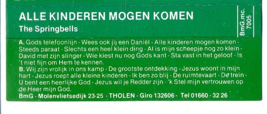 The Springbells – Alle Kinderen Mogen Komen 20 nrs cassette ZGAN