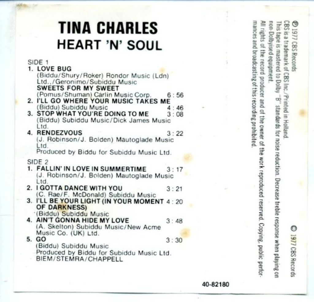 Tina Charles – Heart 'N' Soul 9 nrs cassette 1977 ZGAN