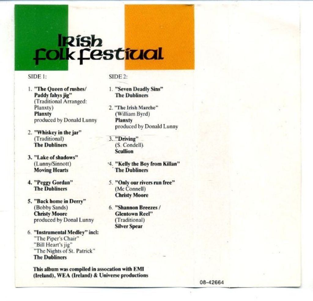Irish Folk Festival 1 12 nrs cassette 1985 ZGAN