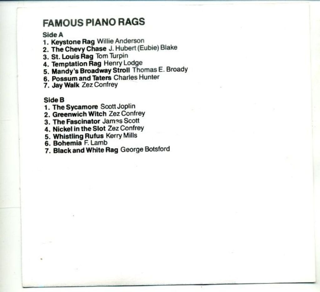 Famous Piano Rags played by Johnn W. Izaks volume 1 14 nrs cassette ZGAN