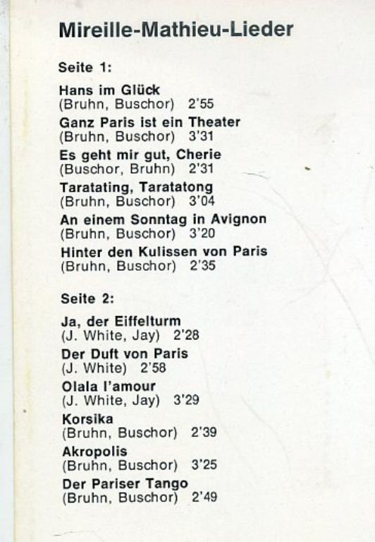 Lena Berg singt Lieder von Mireille Mathieu 12 nrs cassette ZGAN