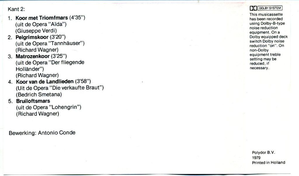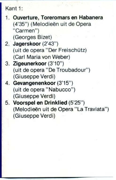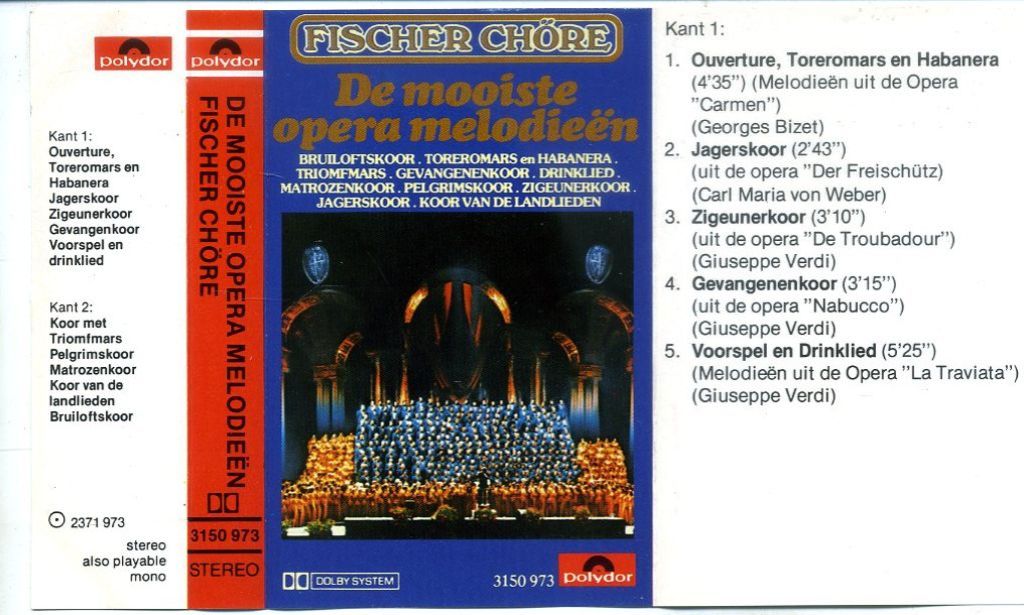 3) Fischer Chöre – De mooiste opera melodieën 10 nrs cassette 1979 ZGAN
