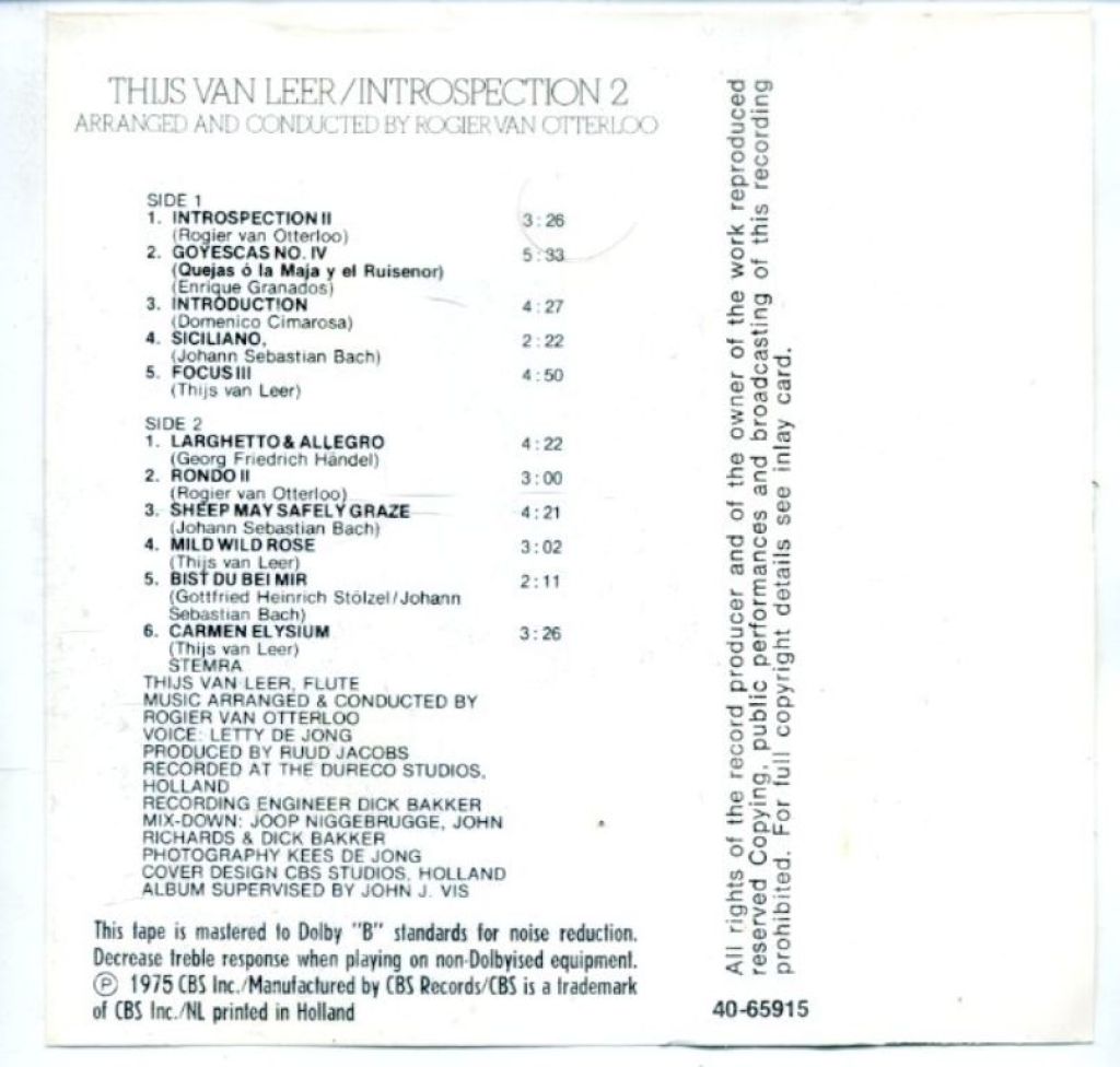 Thijs van Leer – Introspection 2 11 nrs cassette 1975 ZGAN