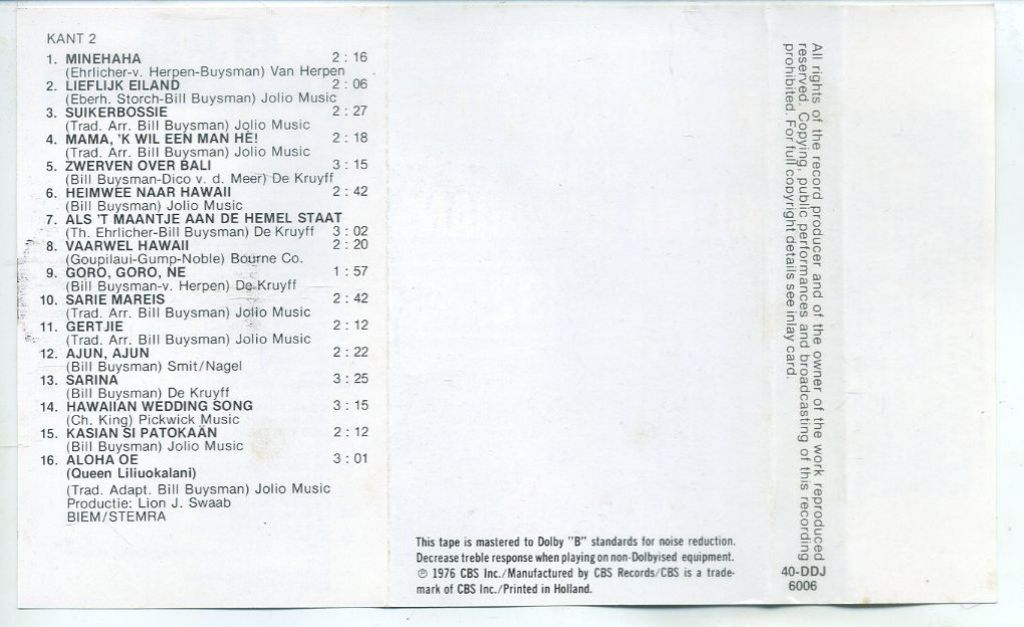 1) Kilima Hawaiians – 40 jaar 32 nrs cassette 1976 ZGAN